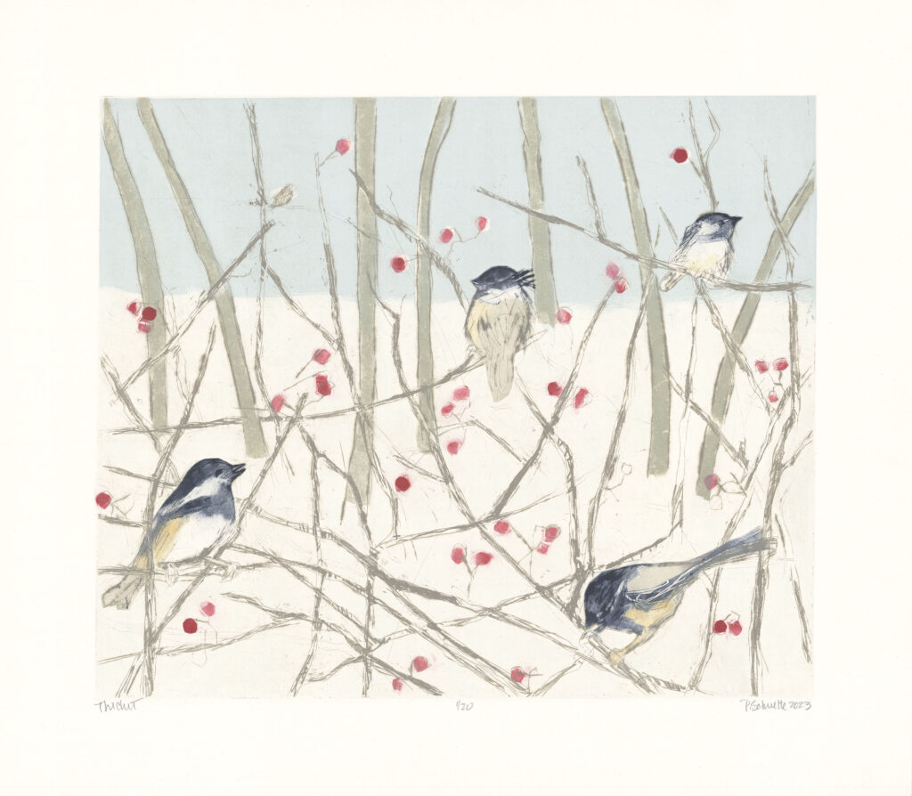 Etching, intaglio, chine colle, drypoint on paper, 22 x 22.25 in