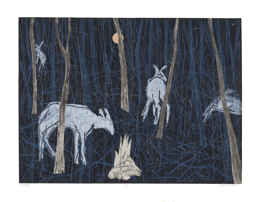 Etching, intaglio, chine colle, drypoint on paper, 22 x 21 in