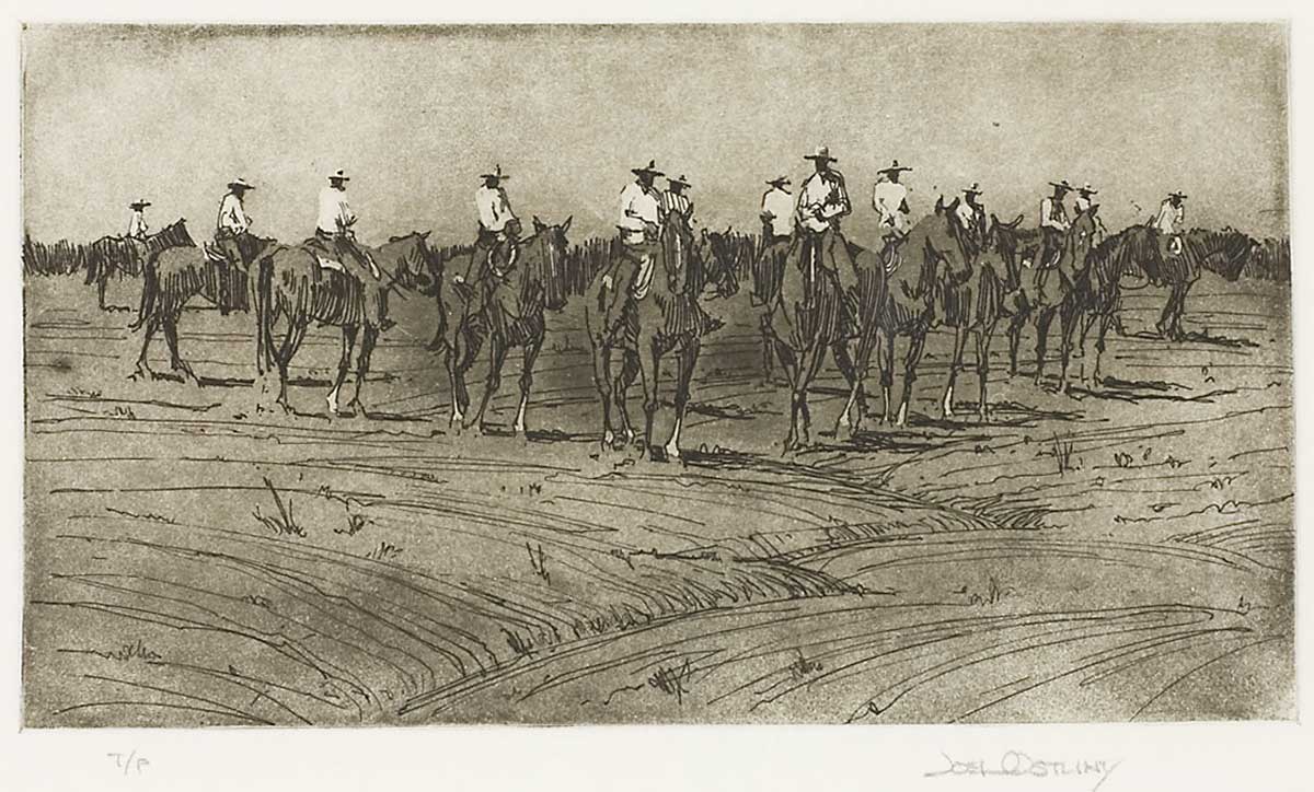 The popular work of Joel Ostlind quietly observes the wide open spaces and wildlife of his native Wyoming in spare, elegant black and white copper plate etchings.