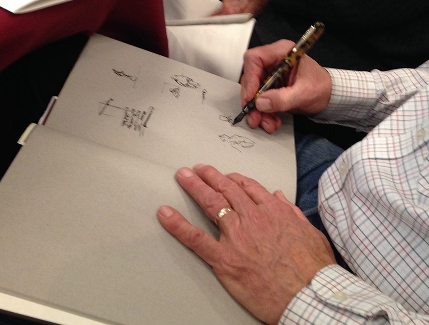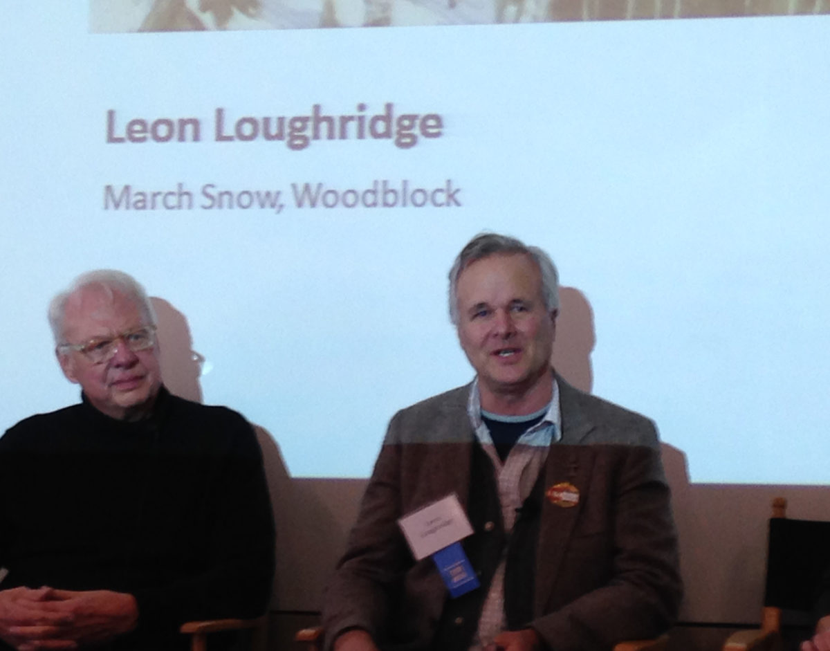 Today’s discussion covered influences from Rembrandt to Frankenthaler, etchings to Japanese woodblock prints — a big influence for wood block printmaker Leon Loughridge. He became fascinated by the layering aspect of printmaking. “I can stand on the shoulders” of the Shin Hanga printmakers, and other greats like Ernest Watson and Walter Joseph Phillips. Classical and modern techniques were discussed, including giclee, polymer transfer and the use of computer tech — an exciting new tool for today’s artists to express themselves with, according to Leon. “Just think what Michelangelo could have done with a few power tools,” he mused.