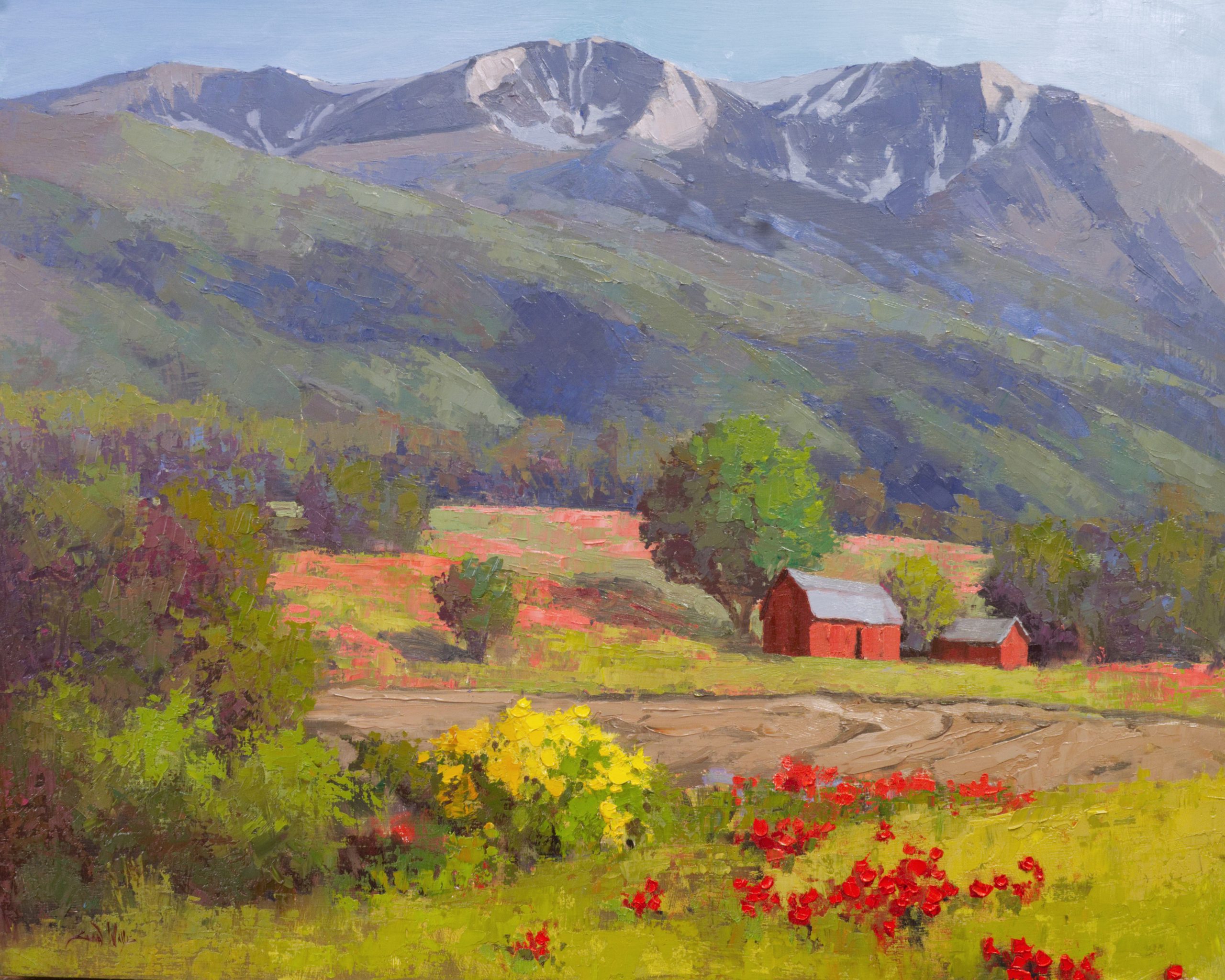 This show seems to be little snippets of my life: my daughter’s preschool, my neighbor’s house, the drive to Ann’s house, and a family trip to Thanksgiving Point, a beautiful botanical garden a few hours south of me. These paintings serve as a record of things in my daily life that I hold most dearly. Most of the work that’s closest to my heart goes to you guys. The subjects I love painting: the old barns, gardens, mountains, lakes, I send to your gallery.