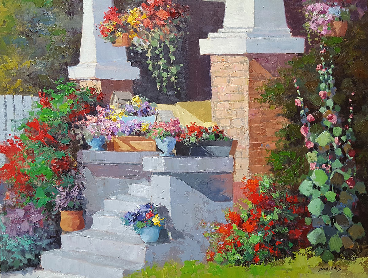 People get so down on themselves if they can’t do something perfect the first time. So, to those learning to convey a message through paint and canvas, the first thing I do when showing the process is to put a big blob on the canvas and say, “Does that make it look like that house? How can we make it look like that house?” Then we go about making it look like a house. There’s a technical and emotional side of things, and you have to learn how to combine the two and create both.