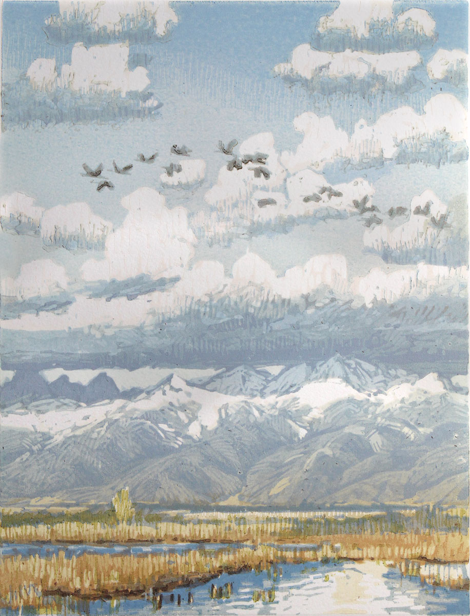 Raised in the open ranch land of Northern New Mexico, Leon Loughridge developed an affinity for the Southwestern landscape. His vision was influenced by his grandmother’s involvement in Northern New Mexico art circles. After purchasing his first letterpress in 1998, he received immediate success with the woodblock prints he produced. The layering of color in the process uniquely captures the atmosphere and depth of the Southwestern landscape.