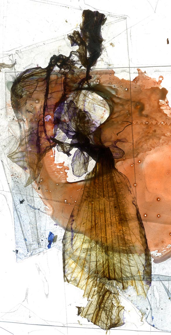 Sunset, Sunrise. Analog versus Digital; is there a difference? Is one medium better than the other? Analog and digital photography are both used in capturing the same thing: a two-dimensional representation of an image. I am a part of an “analog generation”. I grew up using film, color processors and darkrooms as the means for creating photography. I see an evolution in photography’s creative process. The adaptation of technology has depleted the hands-on process that analog photography embraced. With digital techniques, the process becomes instantaneous. It is heartbreaking and freeing at the same time. Photography is consumed faster than any other medium. Thanks to technology, we are exposed to hundreds upon hundreds of photographs every day. Photography is now a language and a survival tool for communication. My photographic series explores and symbolizes the transformation of analog photography to digital photography. A tearing and ripping effect, the sun and the moon, polar opposites and one who needs another. A balance through chaos is formed. Using analog slides (Ektachrome), and natural detritus I form compositions on a light table 1” x 2” with glass slides that are then photographed and enlarged.