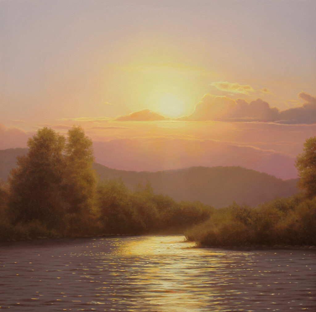 The collection of paintings that I have in this show are all very sincere western pieces, most of which are views that can be found in the Roaring Fork Valley or in Colorado. Only one combines the east and the west and that is “Autumn Reservoir”, I combined two images of both places into one scene. I think out in Colorado, water matters so much more and is more special than it is here in NY. We have great lakes in any direction and tons of streams, puddles, swamps and humidity. Out there, water is such a wonder break up from the rocky, dry and arid soil. It’s crystal clear, and full of beautiful fish, when I think of Colorado in my memories, it’s standing in the river in summer.