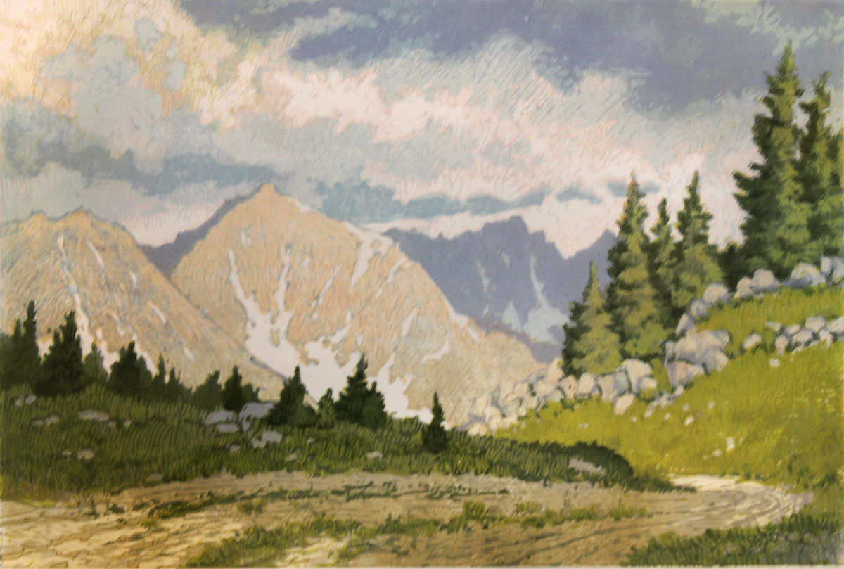 Raised in the open ranch land of Northern New Mexico, Leon Loughridge developed an affinity for the Southwestern landscape. His vision was influenced by his grandmother’s involvement in Northern New Mexico art circles. After purchasing his first letterpress in 1998, he received immediate success with the woodblock prints he produced. The layering of color in the process uniquely captures the atmosphere and depth of the Southwestern landscape.